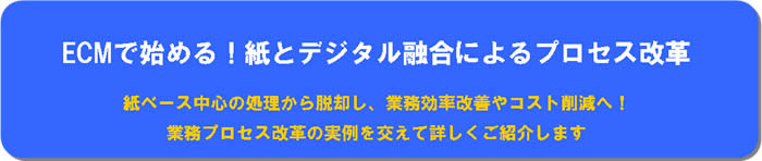 従来切り離されていた基幹データと文書コンテンツを統合管理し、効率化が図る仕組みとして注目されているECM。本セミナーでは、情報共有の促進、業務処理の効率化、コスト削減、さらにプロセス標準化による内部統制強化など様々な効果を発揮するECMの概要と効果について、プロセス改革を実践した実例を交え、紙とデジタル融合を中心にお届けいたします。